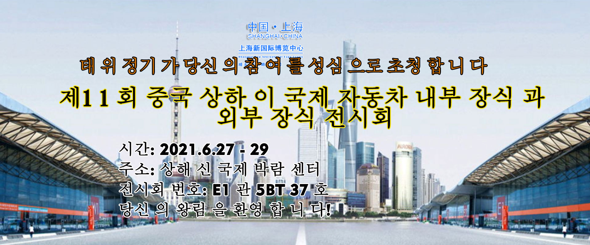 태 웨 이 정밀 기 는 2021 제1 1 회 중국 상하 이 국제 자동차 내부 장식 과 외부 장식 전시회 에 참가 하 는 시간 을 성심 으로 요청 합 니 다: 2021.6.27 - 29;주소: 상하 이 신 국제 박람 센터 (푸 둥)▪용 양 로 2345 호) 우리 전시회 번호: E1 관 5BT 37 호